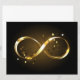 Oro, símbolo de infinito de joyas con estrellas doradas sobre fondo negro. Diseño con estrella dorada.