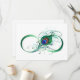 El símbolo del infinito con una pluma de pavo real brillante, verde y artística sobre un fondo blanco. Estilo tatuaje.