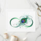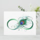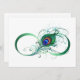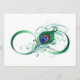 El símbolo del infinito con una pluma de pavo real brillante, verde y artística sobre un fondo blanco. Estilo tatuaje.