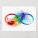 Símbolo de infinito dibujado artísticamente con una hermosa pluma arco iris sobre fondo blanco. Estilo tatuaje.