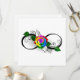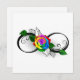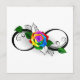 símbolo infinito con rosa arcoiris sobre fondo blanco.