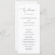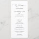 Programa clásico de bodas blancas con "bienvenida" en un guión delicado. Use la plantilla para añadir fácilmente su orden de ceremonia al frente y su fiesta de boda y el mensaje de agradecimiento al dorso. Un diseño sencillo sin gráficos hace de este un diseño elegante y atemporal, perfecto para un boda formal.