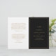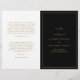Programa simple de bodas plegadas con un diseño moderno y elegante con su monograma inicial y sus detalles rodeados por un delgado borde en la portada. El interior tiene tu fiesta de boda en el lado izquierdo y tu orden de ceremonia en el lado derecho. Todos los elementos de diseño están en oro negro y falso y pueden cambiarse en la herramienta de edición de diseño. Una moda y un diseño de diseño, ideal para una pareja minimalista. Estos baratos programas de bodas están impresos en hojas de papel para una excelente opción económica.