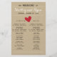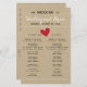 Sencillo programa de bodas cardíacas con acentos rojos en el fondo impreso de Kraft. Dé a los invitados los detalles de su día de la ceremonia. ¡Perfecto para un boda rústico!