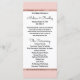 Elegante, moda y modernos textos impresos de escritura de rosa dorado impreso y contorno sobre un fondo rosa rubor, tarjetas de programa de boda. Este diseño clásico y sofisticado es perfecto para una pareja casera moderna y elegante. Personalice con su propio mensaje en la parte delantera, así como un monograma inicial personalizado en la parte posterior. Todo el diseño de impresión fotográfica.