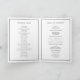 Simple programa de bodas plegadas con un diseño moderno y elegante con sus detalles rodeados por un delgado borde en cada panel. La portada tiene su monograma inicial junto con los datos de su boda. El interior tiene tu fiesta de boda en el lado izquierdo y tu orden de ceremonia en el lado derecho. El revés tiene tu mensaje personal de agradecimiento. Todo el texto está en negro, sobre un fondo blanco y puede cambiarse a cualquier color que desee. Una moda y un diseño de diseño, ideal para una pareja minimalista.