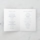 Programa de boda simple doblado con un diseño moderno y elegante. La portada tiene el monograma de tus dos iniciales junto con los detalles de tu boda en blanco sobre un fondo azul polvoriento. El interior tiene a tu cortejo nupcial en el lado izquierdo y el orden de la ceremonia en el lado derecho. La parte trasera tiene tu mensaje personal de agradecimiento. Todos los colores de los elementos del diseño pueden ser cambiados en la herramienta de edición de diseño. Un diseño chic y elegante que es ideal para una pareja minimalista.