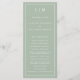 Programa de Bodas Modernas con un diseño sencillo y elegante con un diseño tradicional. Su monograma de dos letras está en la parte superior junto con sus detalles rodeados de un borde delgado. Todos los elementos de diseño son blancos sobre un fondo verde de sabio y pueden cambiarse en la herramienta de edición de diseño. Un diseño minimalista con un toque clásico, ideal para un boda formal.