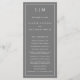 Programa de Bodas Modernas con un diseño sencillo y elegante con un diseño tradicional. Su monograma de dos letras está en la parte superior junto con sus detalles rodeados de un borde delgado. Todos los elementos de diseño son blancos sobre un fondo gris medio y pueden cambiarse en la herramienta de edición de diseño. Un diseño minimalista con un toque clásico, ideal para un boda formal.