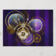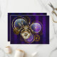 Araña de acero de oro y acero con relojes antiguos decorados con artes dorados sobre el fondo morado, rayado, texturado con lentes y engranajes de latón. Estilo Steampunk.