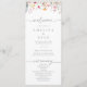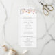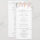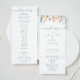 This spring colorful wildflower wedding program is perfect for a rustic wedding. The design features an elegant calligraphy script, which reads wedding in muted gray, hand-painted watercolor purple, violet, burgundy, red, pink, blush, yellow wildflowers, green leaves assembled into a seamless floral patterns.