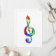 Polígono, arcoiris, brillante clave musical sobre fondo blanco. Tatuaje de polígono. Treble clef