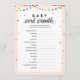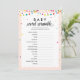 Fiesta temática de la fiesta de la pequeña ducha con coloridas luces de cuerda y confeti. Disputa de palabras para bebés - desmenuza los artículos relacionados con el bebé - ¡el primero que obtiene el máximo en el tiempo asignado gana!
