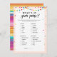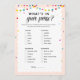 Fiesta temática de la fiesta de la pequeña ducha con coloridas luces de cuerda y confeti. ¿Qué hay en tu bolso? El juego de la ducha de bebé es divertido para todos. Añade los puntos para todo lo que encontrarás en tu bolso. ¡El que tiene más puntos gana el juego!