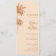 Informe a sus huéspedes sobre el programa de bodas con esta elegante tarjeta de programa, que incluye palmeras de terracota, fondo crema y texto personalizado. Añade fácilmente tus propios detalles haciendo clic en la opción "personalizar".