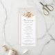 Informe a los invitados con esta fácil plantilla de programa personalizado con el horario de la ceremonia en la parte frontal y la lista oficial del cortejo nupcial en la parte trasera. ¡Enamorarse de intrincados ramos florales bohemios resaltados con marfil y cobre! Los neutros suaves con un toque terroso crean una paleta elegante y ligera para su boda de estilo bohemio. ¡Ideal para una celebración otoñal rústica y contemporánea en entornos de granja o granero y más allá!