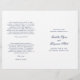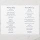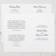 Programa de Bodas plegadas de estilo clásico con palabras de acento en una tipografía caligráfica elegante. El frente tiene los detalles del evento, el interior tiene tu fiesta de boda y orden de ceremonia. La parte posterior tiene una plantilla para su mensaje / citas. Todo el texto es azul marino sobre un fondo blanco y puede cambiarse a cualquier color que desee haciendo clic en el botón "personalizar". Estos programas de boda son perfectos para un boda formal.