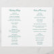 Programa de Bodas plegadas de estilo clásico con palabras de acento en una tipografía caligráfica elegante. El frente tiene los detalles del evento, el interior tiene tu fiesta de boda y orden de ceremonia. La parte posterior tiene una plantilla para su mensaje / citas. Todo el texto es un tono de joyería verde esmeralda sobre un fondo blanco y puede cambiarse a cualquier color que desee haciendo clic en el botón "personalizar". Estos programas de boda son perfectos para un boda formal.