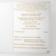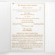 La tradicional Masa Nupcial Latina es una celebración profundamente reverente y hermosa del Sacramento de Matrimonio, rico en tradición y profunda espiritualidad. Diseñado específicamente para un boda tradicional de Masas Latinas, el programa de bodas triplias "Virgin Mary TLM" contiene las partes necesarias de la Rita Nupcial Latina. En la portada frontal se ve la imagen de la Virgen María mostrada como oval en la esquina superior derecha en medio de la imagen de rosas con fondo blanco. El encabezado se muestra en una fuente Nuptial de color dorado, mientras que el subtítulo se muestra en una impresión clara. Los nombres de Bride y Groom también se muestran en una fuente Nuptial. El nombre y la dirección de la iglesia aparecen en la parte inferior en una letra más pequeña. Con explicaciones de la misa exhibidas en todo el edificio, este elegante diseño también incluye el nombre del funcionario del boda, nombres de servidores de altar, nombres de los padres de la novia y padres del novio, nombres de fiestas de boda, incluidos los nombres de una dama de honor y mejor hombre, espacio para hasta siete damas de honor y nombres de padrinos, además de los nombres del flor chica y portador de anillo. Además, el diseño de la portada trasera muestra la foto que se muestra como un óvalo debajo de un verso biblial (o su mensaje) contra fondo blanco. Todo el texto es personalizable. Diseñado para coordinar con la "Virgin Mary Catholic Boda Suite".