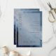 This elegant wedding program features a serene watercolor design with soft blue tones and subtle gold accents, creating a tranquil and sophisticated atmosphere. The layout is balanced, with the word "WELCOME" prominently displayed vertically on the left in bold serif font, while the right side lists ceremony details in clean, organized sans-serif typography. The overall style is formal yet inviting, perfect for celebrating a special occasion with an ethereal touch.