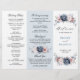 El elegante y moderno programa de bodas tríplias de verano floral de mitad de verano presenta un ramo de rosas de acuarela en tonos pizarra, azul polvoriento, rosa polvoriento, rosa polvoriento, malva, salvia con hojas botánicas verdes y eucalipto. Encontrará más diseños y variaciones de mi tienda "blissweddingpaperie". Y no dudes en ponerte en contacto conmigo para seguir personalizando o haciendo coincidir artículos.
