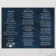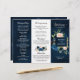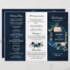 Tarjeta de programa de bodas Tri Fold azul marino oscuro floral con elegante ramo de azul marino, azul real, blanco, rosa ondulado y hojas de eucalipto verde salado. Comuníquese conmigo para obtener ayuda sobre la personalización o si necesita cualquier otro producto con este diseño.