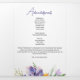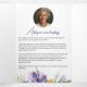 Este precioso programa floral conmemorativo de diseño ofrece un homenaje sincero y elegante a la vida de un ser querido. Con delicadas flores acuáticas en suaves púrpura, rosa y verde, el diseño incluye espacio para una foto, nombre y fechas en la cubierta bajo el título "In Loving Memory". El interior ofrece secciones cuidadosamente dispuestas para reconocimientos, orden de servicio, tributos personales y un obituario o lectura opcional, todo ello realzado con acentos florales coordinados y tipografía elegante. Este programa de personalizable es una manera significativa de honrar una vida bien vivida, creando un conservador duradero para la familia y amigos.