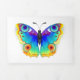 Arcoiris, realista, de dibujo artístico, colores brillantes mariposa pavo real con alas detalladas texturizadas sobre fondo blanco. Mariposa arcoiris.