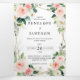 Elegante invitación de matrimonio botánico floral Rubor rosa / melocotón con un ramo de rosas de acuarela pastel suave, peonías e hidrangeas en tonos rosas, melocotón y crema con hojas botánicas verdes y hojas de eucalipto. Una moderna elección de diseño, perfecta para los bodas con temática primaveral y veraniega de sabores rosados. Póngase en contacto conmigo para obtener más información sobre la personalización o los elementos coincidentes.