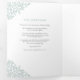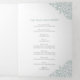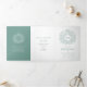 Programa de bodas de arte botánico de hoja gris-verde acristalado con tu propia historia de amor y secciones de recuerdo. Personalice este programa de bodas triples con sus propios detalles de la ceremonia de boda, nombres de fiestas, historias de amor y dedicación. Diseño sencillo de hoja verde en torno a sus propias iniciales de monograma y en blanco y verde. Hay disponibles otros colores y elementos bodas coincidentes. © Dibujo y diseño original de la hoja de Sarah Trett para www.mylittleedenweddings.com en Zazzle.