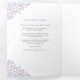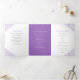 Programa de bodas de arte botánico con hojas de púrpura, con tu propia historia de amor y secciones de recuerdo. Personalice este programa de bodas triples con sus propios detalles de la ceremonia de boda, nombres de fiestas, historias de amor y dedicación. Diseño simple de hoja púrpura en torno a sus propias iniciales de monograma y en blanco y púrpura. Hay disponibles otros colores y elementos bodas coincidentes. © Dibujo y diseño original de la hoja de Sarah Trett para www.mylittleedenweddings.com en Zazzle.