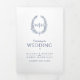 Arte botánico de hoja oval de color azul marino oscuro, fue monogramado programa de bodas con tu propia historia de amor y secciones de recuerdo. Personalice este programa de bodas triples con sus propios detalles de la ceremonia de boda, nombres de fiestas, historia de fotos y amor, y dedicaciones. Diseño simple de hoja ovalada con sus propias iniciales monográficas y en blanco y azul oscuro. Hay disponibles otros colores y elementos bodas coincidentes. © Dibujo y diseño original de la hoja de Sarah Trett para www.mylittleedenweddings.com en Zazzle.