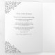 Un programa de bodas de arte botánico de hoja gris oscuro con tu propia historia de amor y secciones de recuerdo con un fondo blanco. Personalice este programa de bodas triples con sus propios detalles de la ceremonia de boda, nombres de fiestas, historias de amor y dedicación. Diseño sencillo de hojas de color gris oscuro en torno a sus propias iniciales monográficas y sobre telarañas alternadas de color blanco y gris oscuro. Hay disponibles otros colores y elementos bodas coincidentes. © Dibujo y diseño original de la hoja de Sarah Trett para www.mylittleedenweddings.com en Zazzle.