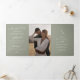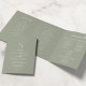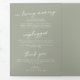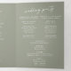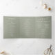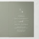 Este programa triple de boda de anagrama verde de moda boho es perfecto para un boda minimalista. El estilo bohemio moderno de tonos verde claro neutro presenta una caligrafía rústica sencilla con un estilo único y clásico. Personaliza tu programa de bodas con tus iniciales, nombres, fecha y ubicación del boda, tu cita o letra favorita, orden de servicio, fiesta de bodas, mensaje conmemorativo de la memoria, mensaje de ceremonia sin conexión, nota de agradecimiento y foto.