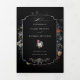 El diseño de este programa de moda de tres veces se caracteriza por una vida de fondo floral holandesa del siglo XVIII, incluyendo tulipanes blancos, rojos y dorados y flores silvestres, sobre un fondo negro con etiqueta central personalizado, gráficos florales complementarios y una elegante caligrafía personalizado fluida con plantilla fotográfica.