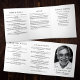 Elegante programa de servicio funerario o conmemorativo plegable en tres partes con una sola foto y un diseño clásico en blanco y negro ofrece una forma atemporal de honrar la vida y el legado de su ser querido. La portada presenta una gran foto en forma de arco seguida del título editable "Una Celebración de la Vida", con el nombre y las fechas hermosamente mostrados en fuentes de escritura y serif. El resto del diseño proporciona espacio suficiente para un obituario detallado, orden del servicio, poema o plegaria significativa, agradecimientos, toques personales como citas, recuerdos o una línea de tiempo de la vida, o cualquier otro texto de su elección. La tipografía limpia y el diseño estructurado aseguran la legibilidad y la elegancia, lo que lo hace ideal para conmemoraciones tradicionales, celebraciones de la vida o servicios religiosos.
