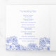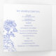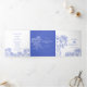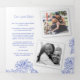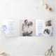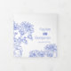 Dibujo gráfico de esquema botánico de crisantemo azul y blanco en un programa de boda cuadrado boda personalizado. Personalizar con el nombre de su propia novia y del novio, fecha de boda, ceremonia de boda, historia de amor, fiesta de boda y gracias más tres de sus propias fotos, un centro de página completa y dos en su página de historia de bodas. Perfecto para un boda de color azul o morado. El diseño presenta una impresión de dibujo gráfico de las flores de crisantemo de Sarah Trett para www.mylittleedenweddings.com sólo disponible en zazzle.