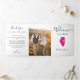 Bienvenido a tu boda con esta tarjeta triple. Hay mucho espacio para incluir tu itinerario, sugerencias de restaurantes, cosas que hacer, e información de contacto. Hay espacio para una foto en la parte posterior de la tarjeta. Todo el texto puede personalizarse, incluido el encabezado. Puede editar los colores de cualquier parte de este diseño, así como mover el corazón a la ubicación de su boda. Para cambiar los colores, haga clic en personalizar y, a continuación, "editar utilizando la herramienta de diseño". Seleccione el elemento que desee editar y, a continuación, utilice las herramientas para realizar los cambios.