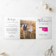 Bienvenido a tu boda con esta tarjeta triple. Hay mucho espacio para incluir tu itinerario, sugerencias de restaurantes, cosas que hacer, e información de contacto. Hay espacio para una foto en la parte posterior de la tarjeta. Todo el texto puede personalizarse, incluido el encabezado. Puede editar los colores de cualquier parte de este diseño, así como mover el corazón a la ubicación de su boda. Para cambiar los colores, haga clic en personalizar y, a continuación, "editar utilizando la herramienta de diseño". Seleccione el elemento que desee editar y, a continuación, utilice las herramientas para realizar los cambios.