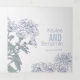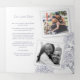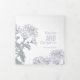 Dibujo gráfico de esquema botánico de flores blancas de crisantemo con hojas grises verdes en un programa de boda cuadrado boda personalizado. Personalizar con el nombre de su propia novia y del novio, fecha de boda, ceremonia de boda, historia de amor, fiesta de boda y gracias más tres de sus propias fotos, un centro de página completa y dos en su página de historia de bodas. Perfecto para un boda morado. El diseño presenta una impresión de dibujo gráfico de las flores de crisantemo de Sarah Trett para www.mylittleedenweddings.com sólo disponible en zazzle.