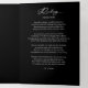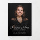 Este elegante programa conmemorativo cuenta con un sofisticado fondo negro con elegantes fuentes cursivas blancas y serif, lo que crea un homenaje atemporal y respetuoso a su ser querido. La portada muestra un sentido mensaje "En la memoria amorosa" junto a una hermosa foto de los fallecidos, enmarcada por una tipografía de buen gusto que destaca su nombre, fechas de vida y una conmovedora cita conmemorativa u otro texto. En el interior, la disposición está cuidadosamente organizada con secciones para el orden del servicio, el obituario, los reconocimientos y una lectura o oración significativa, lo que brinda espacio para honrar recuerdos preciados, logros de la vida y tributos personales. La inclusión de un collage de fotos añade un toque personal, mostrando momentos preciosos que celebran la vida de la persona. Este programa de personalizable ofrece una manera digna y cariñosa de conmemorar y compartir la historia de alguien que se perdió profundamente.