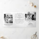 Esta elegante plantilla de programa funerario presenta un diseño atemporal en blanco y negro y 14 fotos, ofreciendo una manera clásica y respetuosa de honrar a un ser querido. La portada muestra una foto de tu ser querido, creando un toque íntimo y personal. El interior está bien acondicionado, con un amplio espacio para un obituario, un orden de servicio y un poema o cita. El uso de fuentes simples y elegantes y encabezados claros garantiza que el programa sea fácil de leer y navegar. Este programa es un tributo apropiado que combina gracia y simplicidad, permitiendo a la familia y amigos recordar y celebrar la vida de alguien especial.