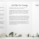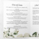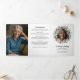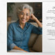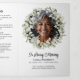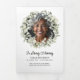 Los programas de servicio conmemorativo personalizados con un diseño floral moderno ofrecen una forma hermosa y sincera de honrar y celebrar la vida de un ser querido. Este elegante diseño plegado presenta un tributo fotográfico en la portada, enmarcado con una suave corona de follaje de eucalipto en acuarela, junto con el nombre de su ser querido, las fechas de vida y un conmovedor mensaje de "En memoria amorosa". En el interior, el programa proporciona espacio para el orden del servicio, una necrología y un poema, escritura o cita, dando a las familias la oportunidad de compartir recuerdos y palabras significativas. Los paneles traseros presentan agradecimientos y una segunda foto. La tipografía moderna y limpia, combinada con sutiles acentos de vegetación en acuarela, crea un diseño atemporal y edificante que equilibra la dignidad con la calidez. Perfectos para funerales, servicios conmemorativos o celebraciones de la vida, estos programas no solo guían a los invitados a través del servicio, sino que también sirven como un recuerdo que la familia y los