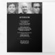 Simple y moderno programa funerario gráfico en blanco y negro. Reemplace el texto de ejemplo y doce fotos de marcador de posición con sus propias fotos especiales y orden de servicio conmemorativo, obituario, lectura o poema, y reconocimientos, y detalles de información personal. También hay otros artículos de recuerdo del recuerdo del recuerdo del funeral que coinciden. Diseño por www.mylittleeden.com