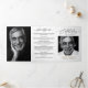 Moderna celebración en blanco y negro del programa de la triple vida que ofrece una manera refinada y sincera de honrar la memoria de un ser querido con un diseño sofisticado y atemporal. Este programa funerario "todo en uno" presenta una audaz foto de panel completo en la portada junto con un guión elegante y una tipografía sísmica, creando un tributo limpio pero emocional. El diseño incluye espacio para un nombre y fechas de vida, con paneles interiores dedicados a un orden estructurado de servicio, sección obituaria y un poema o palabras de confort significativas. El panel final está reservado para reconocimientos y detalles de recepción, lo que permite a las familias expresar gratitud con gracia. Con su paleta monocroma, sus elegantes cabeceras de escritura y su amplio espacio para el contenido personalizado, esta disposición plegada es ideal para las familias que buscan un diseño pulido y respetuoso de programa funerario que equilibre belleza con funcionalidad.