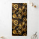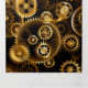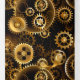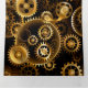 Sin soldadura, metalizado, latón, engranajes dorados sobre un fondo oscuro y oxidado. Estilo Steampunk.