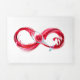 Infinity symbol of continuous stream of red wine pouring into glass wine glass on white background.