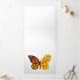 Naranja, mariposa monarca detallada con ala decorada con amapola californiana amarilla y vibrante sobre fondo blanco.