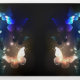 Fabuloso, brillante, azul y amarillo, mariposa nocturna sobre fondo oscuro.