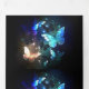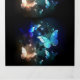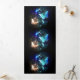 Fabuloso, brillante, azul y amarillo, mariposa nocturna sobre fondo oscuro.